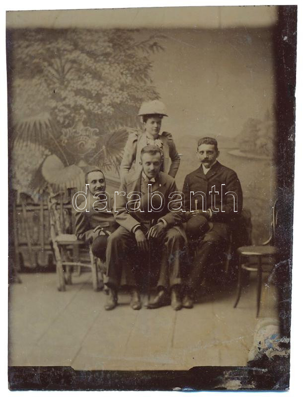 cca 1900 Procopius Béla (1868-1945) numizmatikus, későbbi athéni nagykövet és családja fotója ferrotípián vizitkártya / Photo of Béla Procopius (1868-1945) numismatist, Hungarian ambassador to Greece 7x9 cm
