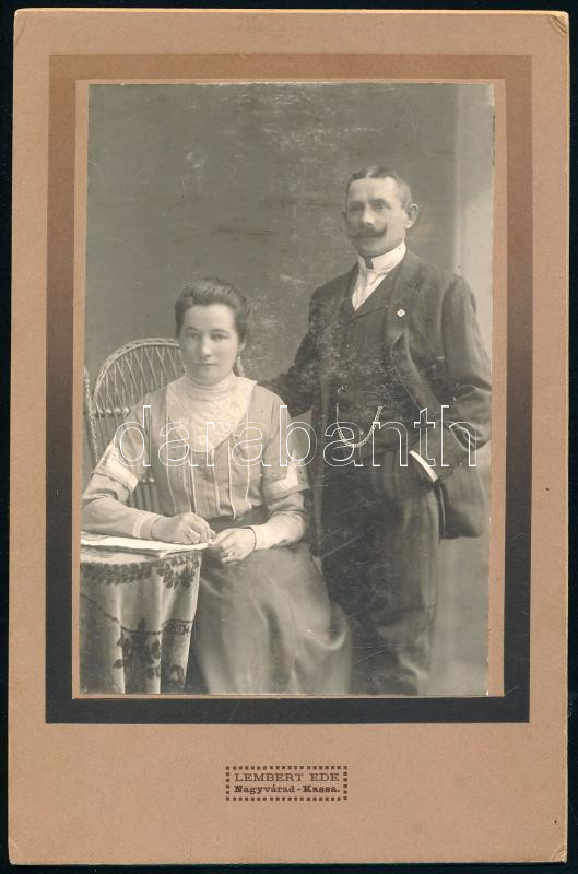 cca 1915 Házaspár portréja, keményhátú fotó Lembert Ede (Nagyvárad / K... https://www.darabanth.com/de/450-Fernauktion/450.0/Fotografie/Foto~500017/cca-1915-Hazaspar-portreja-kemenyhatu-foto-Lembert-Ede-Nagyvarad-Kassa-mutermebol-1~II2992070