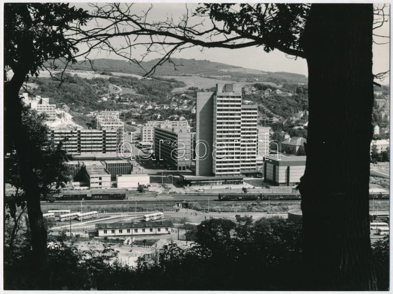 cca 1975 Körtvélyesi László pécsi fotóművész pecséttel jelzett, vintage fotóművészeti alkotása (Salgótarjáni látkép), ezüst zselatinos fotópapíron, a pecsét halvány, de azért olvasható, 18x24 cm
