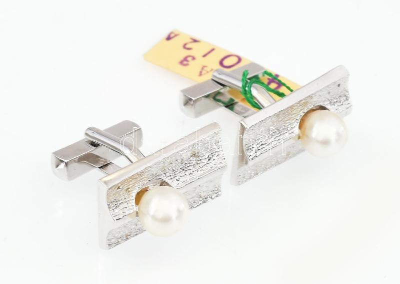 Beschreibung: Ezüst(Ag) japán mandzsettapár gyönggyel, jelzett, bruttó: 10,4 g