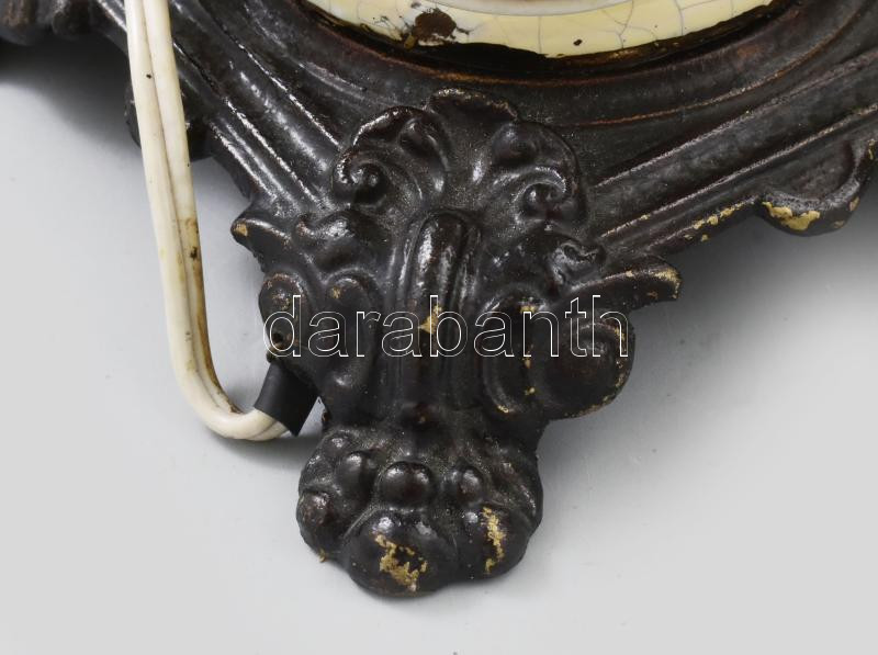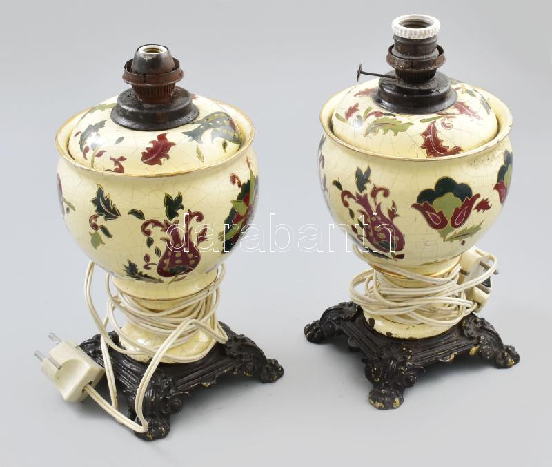 Beschreibung: Két darab, egy pár antik fajansz lámpa vas öntvény talpon, modern vezetékezéssel. Kézzel festett, kisebb sérülésekkel.30 cm