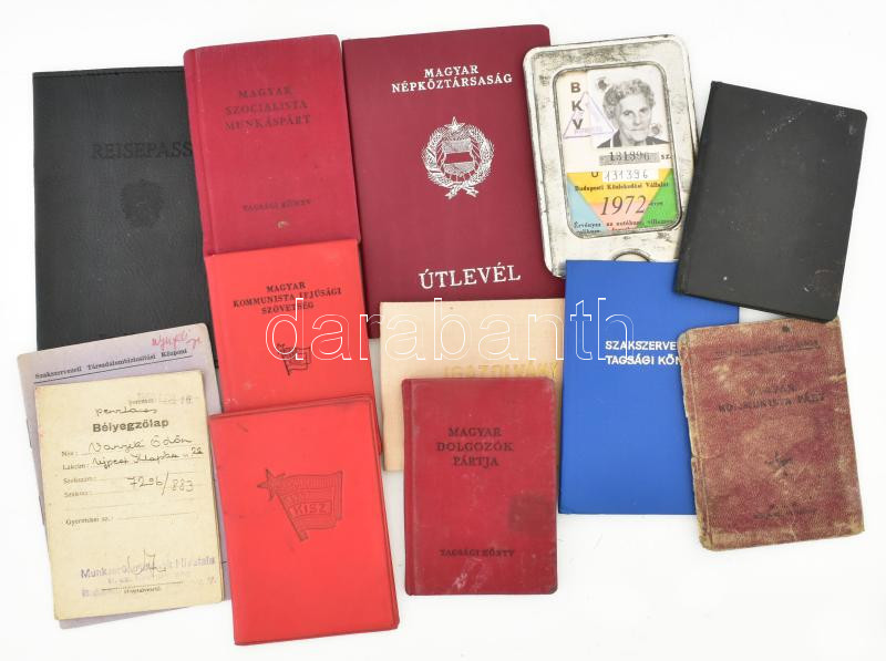 12 db vegyes igazolvány és útlevél, 1946-tól 1989-ig közte BKV, Kommun... https://www.darabanth.com/de/450-Fernauktion/450.0/Kunst-Dokumente-andere-Sammelgebiete/Dokument~500022/12-db-vegyes-igazolvany-es-utlevel-1946-tol-1989-ig-kozte-BKV-Kommunista-parttagsagi-KIS~II2992714