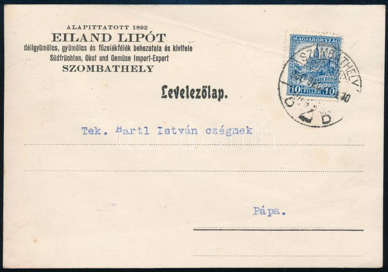 Beschreibung: 1930 Szombathely, Eiland Lipót déligyümölcs, gyümölcs és főzelékfélék behozatala és kivitele, levelezőlap