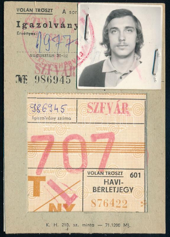 1977 Volán Tröszt arcképes bérlete https://www.darabanth.com/de/450-Fernauktion/450.0/Kunst-Dokumente-andere-Sammelgebiete/Dokument~500022/1977-Volan-Troszt-arckepes-berlete~II2989034