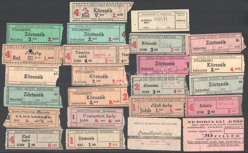 Beschreibung: cca 1940 24 db régi mozijegy (Békéscsaba, Csaba Mozgó, Apolló Filmszínház)