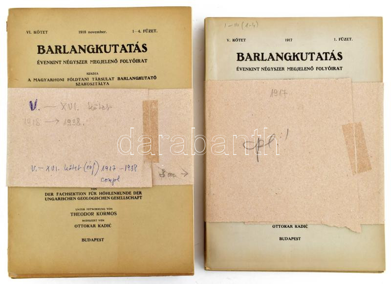 1917-1938 Barlangkutatás. Barlangtani szakfolyóirat. Évenkint négyszer... https://www.darabanth.com/de/450-Fernauktion/450.0/Kunst-Dokumente-andere-Sammelgebiete/Drucksachen~2000024/1917-1938-Barlangkutatas-Barlangtani-szakfolyoirat-Evenkint-negyszer-megjeleno-szam-Kiadja~II2991541