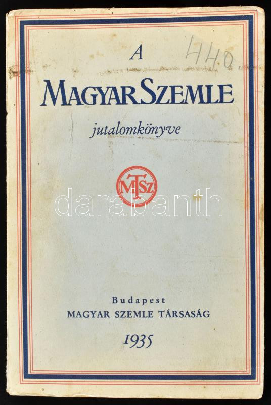 1935 A Magyar Szemle névre szóló jutalomkönyve. Bp., 1935, Magyar Szem... https://www.darabanth.com/de/450-Fernauktion/450.0/Kunst-Dokumente-andere-Sammelgebiete/Drucksachen~2000024/1935-A-Magyar-Szemle-nevre-szolo-jutalomkonyve-Bp-1935-Magyar-Szemle-Tarsasag-Kiadoi-pap~II2991308