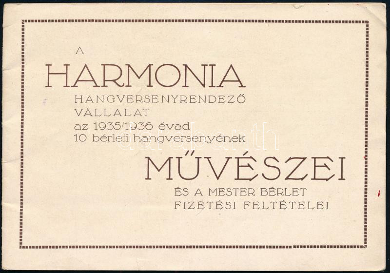 1935 A harmónia hangversenyrendező vállalat által szervezett hangverse... https://www.darabanth.com/de/450-Fernauktion/450.0/Kunst-Dokumente-andere-Sammelgebiete/Drucksachen~2000024/1935-A-harmonia-hangversenyrendezo-vallalat-altal-szervezett-hangversenyek-muveszei-Kepes-fC3~II2993895