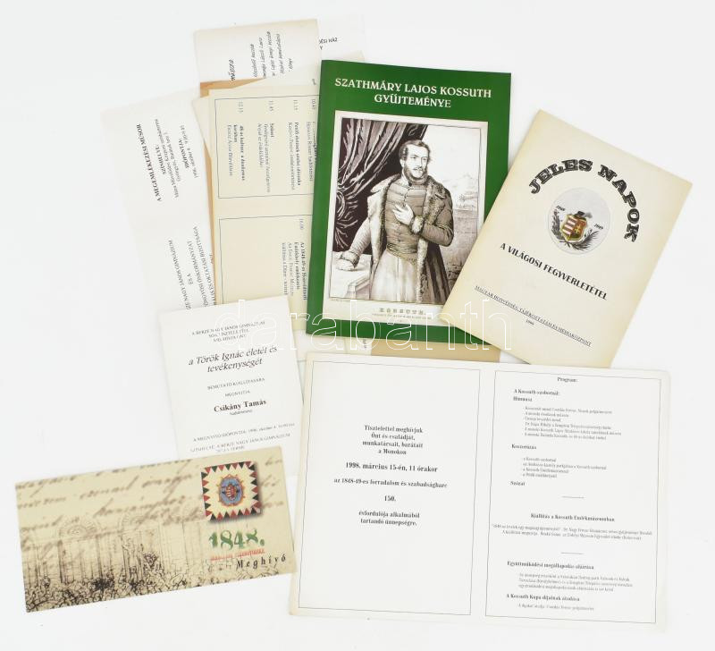1996-1999 1848/1849-el kapcsolatos meghívók, prospektusok, 12, valamint Szathmáry Lajos Kossuth Gyűjteménye (Sárospatak, 1998.) és Jeles napok. A világosi fegyverletétel. (1999, MH.)
