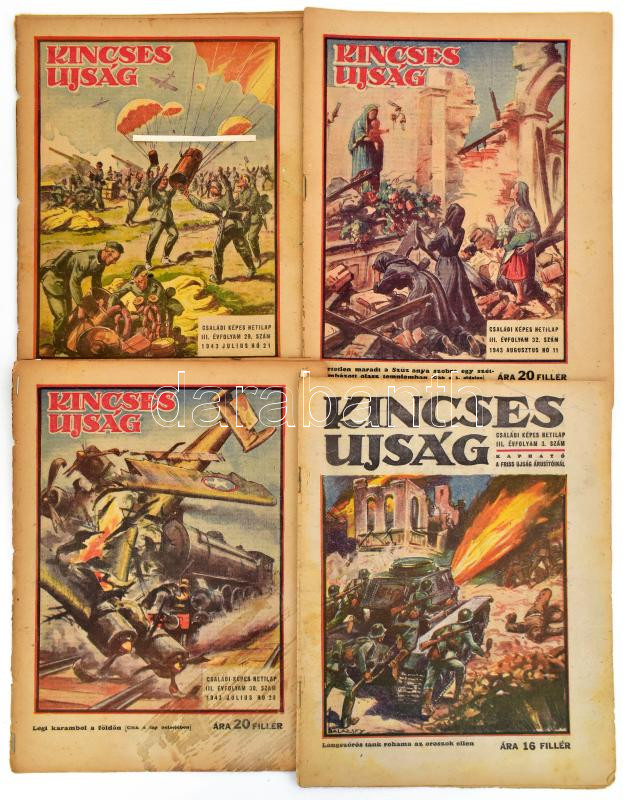 Beschreibung: cca 1940 A Kincses újság 4 db száma, benne sci-fi regény folytatásokban, képregények