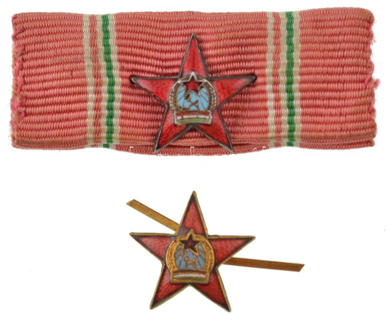 1949. "A Magyar Népköztársasági Érdemérem ezüst fokozat" szalagsávja zománcozott miniatűrrel + az arany fokozat miniatűrje szalagsáv nélkül T:AU