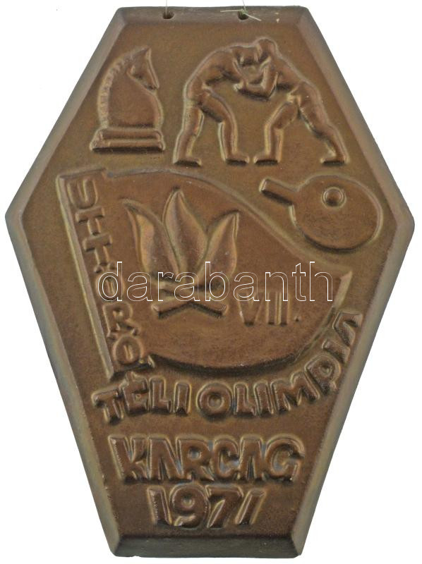 1977. "VII. Téli Olimpia Karcag 1977" festett kerámia plakett, felakas... https://www.darabanth.com/de/450-Fernauktion/450.0/Numismatik/Sportpreise-und-Sportgedenkmedaillen~2000011/1977-VII-Teli-Olimpia-Karcag-1977-festett-keramia-plakett-felakaszthato-150x220mm-TAU~II2966109