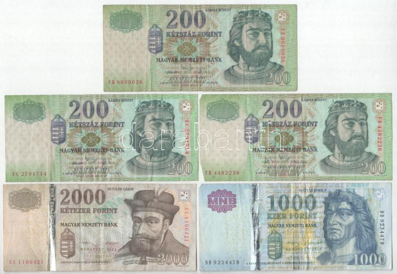 Beschreibung: 2005. 200Ft "FB" + 2006. 200Ft "FC" + 2007. 200Ft "FB" + 2013. 2000Ft "CC" + 2015. 1000Ft "DD" T:F