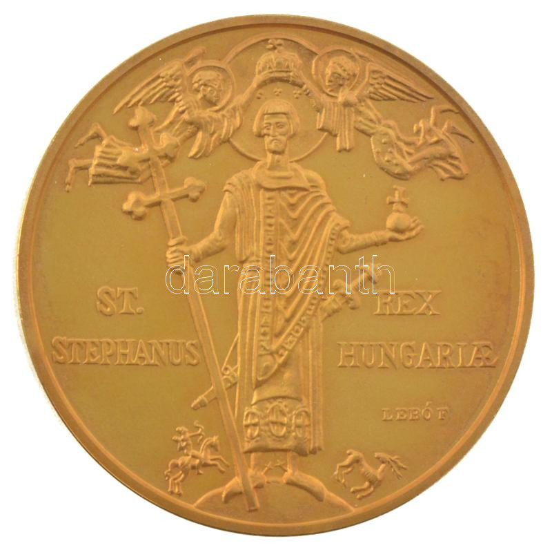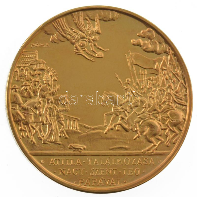1996. "Magyarok népvándorlása és honfoglalása - Attila találkozása Leó pápával" aranyozott Cu emlékérem eredeti dísztokban (42,5mm) T:PP patina, ujjlenyomat, kis karc