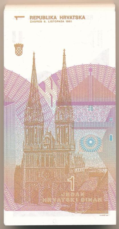 Beschreibung: Horvátország 1991. 1D (100x) közte sorszámkövető sorozatokkal T:UNC,AU