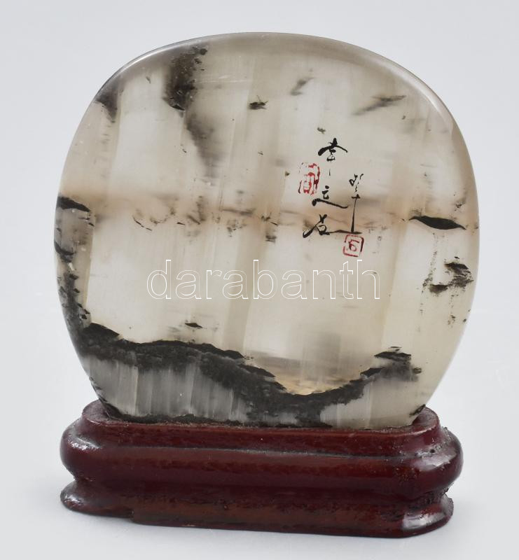 Beschreibung: Kínai jószerencsehozó asztaldísz, fa, üveg, kis kopással, m: 12 cm