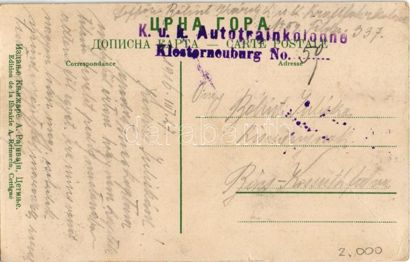 1916 Cetinje, Cettinje, Cettigne; S.M. le Roi rentrant de l'église / King Nikola I Petrovic-Njegos of Montenegro + "K.u.K. Autotrainkolonne Klosterneuburg No. 59" (small tear)