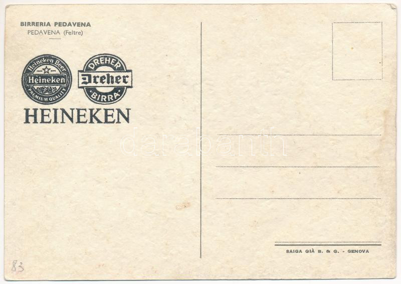Pedavena (Belluno), Birreria Pedavena (Feltre). Dreher, Heineken / Ita... https://www.darabanth.com/de/451-Fernauktion/451.0/Ansichtskarten/Italien~2000053/Pedavena-Belluno-Birreria-Pedavena-Feltre-Dreher-Heineken-Italian-brewery-advertisement-fa~II2981448