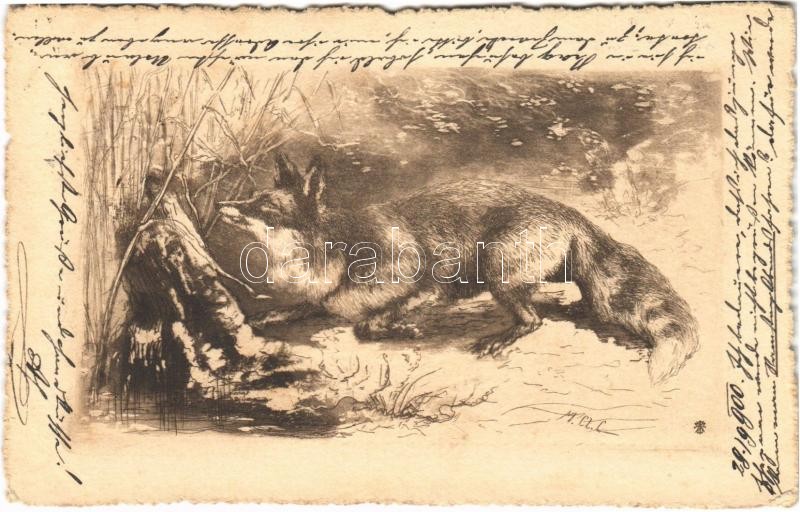1900 Hunter art postcard, fox (fl) https://www.darabanth.com/de/451-Fernauktion/451.0/Ansichtskarten/Jagd~2000112/1900-Hunter-art-postcard-fox-fl~II2336348
