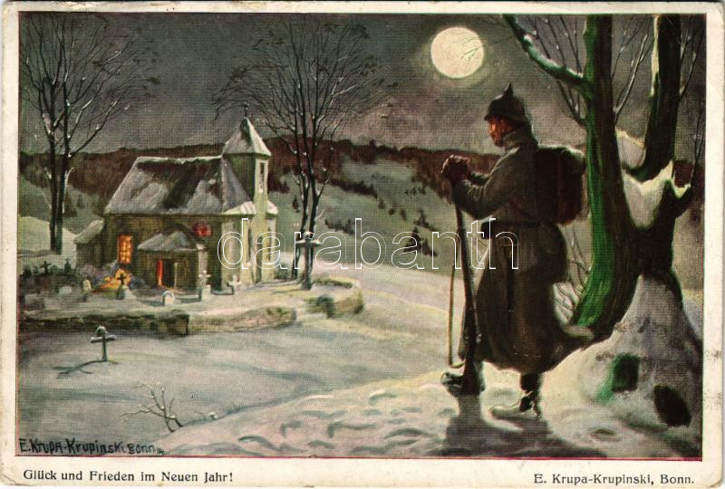 Beschreibung: 1915 Glück und Frieden im Neuen Jahr! / WWI German military art postcard with New Year greeting s: E. Krupa-Krupinski (EB)