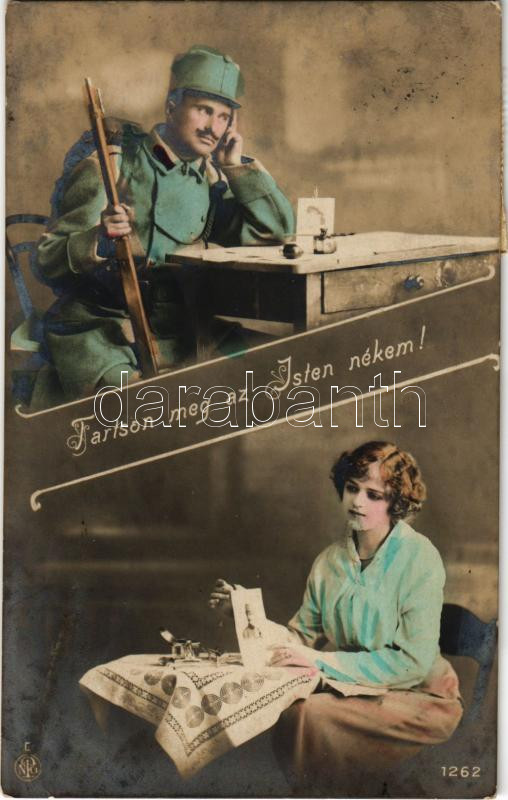 1917 Tartson meg az Isten nékem! / WWI K.u.K. military, romantic coupl... https://www.darabanth.com/de/451-Fernauktion/451.0/Ansichtskarten/Militaria~2000093/1917-Tartson-meg-az-Isten-nekem-WWI-KuK-military-romantic-couple-fl~II2996256