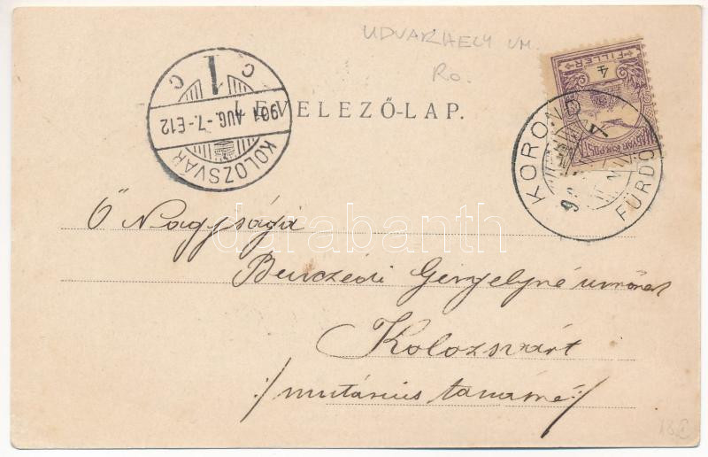 1901 Korond, Corund; Üdvözlet Korond-gyógyfürdőről! A Magyar Gleichenb... https://www.darabanth.com/de/451-Fernauktion/451.0/Ansichtskarten/Siebenburgen~2000005/1901-Korond-Corund-Udvozlet-Korond-gyogyfurdorol-A-Magyar-Gleichenberg-Gaspar-Gyula-kiad~II2998950