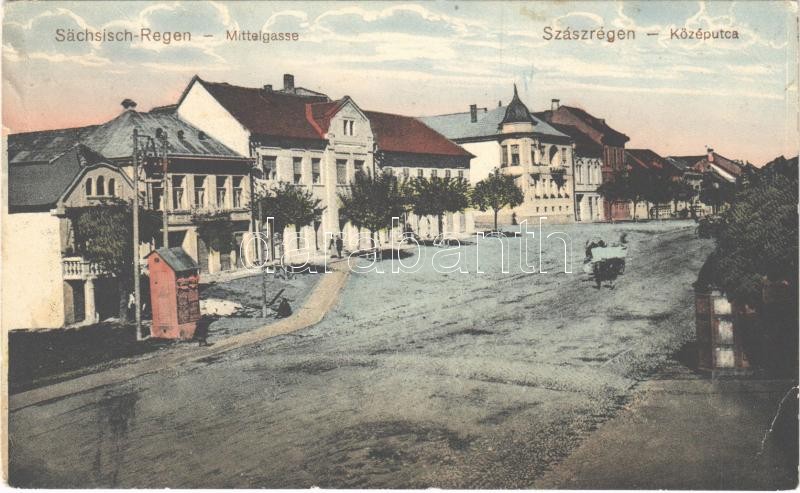1916 Szászrégen, Reghin; Közép utca / Mittelgasse / street (Rb) https://www.darabanth.com/de/451-Fernauktion/451.0/Ansichtskarten/Siebenburgen~2000005/1916-Szaszregen-Reghin-Kozep-utca-Mittelgasse-street-Rb~II2350050