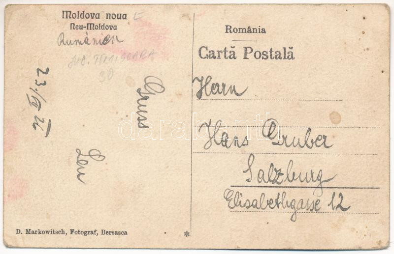 1926 Újmoldova, Neumoldowa, Bosneag, Moldova Noua; Fotograf D. Markowi... https://www.darabanth.com/de/451-Fernauktion/451.0/Ansichtskarten/Siebenburgen~2000005/1926-Ujmoldova-Neumoldowa-Bosneag-Moldova-Noua-Fotograf-D-Markowitsch-fl~II2991148