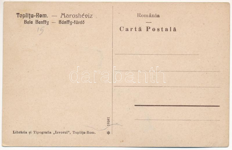 Maroshévíz, Toplita; Bánffy fürdő / Baia Banffy / spa, bath (EK) https://www.darabanth.com/de/451-Fernauktion/451.0/Ansichtskarten/Siebenburgen~2000005/Marosheviz-Toplita-Banffy-furdo-Baia-Banffy-spa-bath-EK~II2992299
