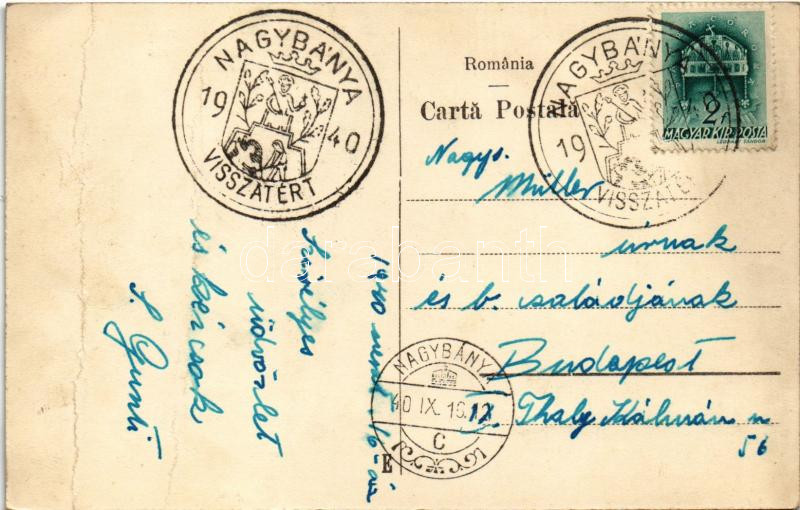 Beschreibung: Nagybánya, Baia Mare; Lacul Parcului Regina Maria / Ligeti tó / lake + "1940 Nagybánya visszatért" So. Stpl. (fa)