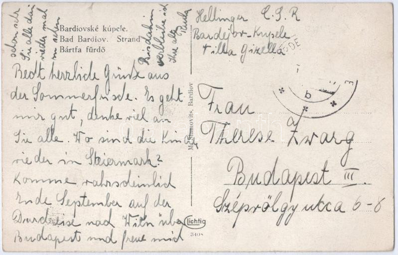 Bártfafürdő, Bardejovské Kúpele, Bardiov, Bardejov; strand. M. Slamovi... https://www.darabanth.com/de/451-Fernauktion/451.0/Ansichtskarten/Slowakei~2000006/Bartfafurdo-Bardejovske-Kupele-Bardiov-Bardejov-strand-M-Slamovits-swimming-pool-beach~II2680601