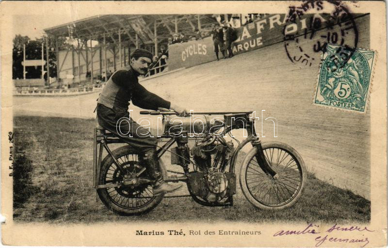 1904 Marius Thé, Roi des Entraineurs / French cyclist, coache. Winner in May 1904 of the Grand Prix de la République in Paris, unofficial motorcycling world championship.TCV card (fa)