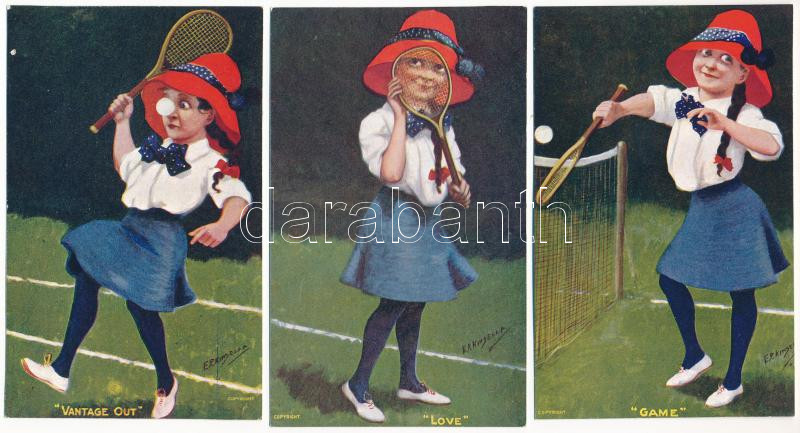 3 pre-1945 unused sport postcards, tennis. s: E. P. Kinsella