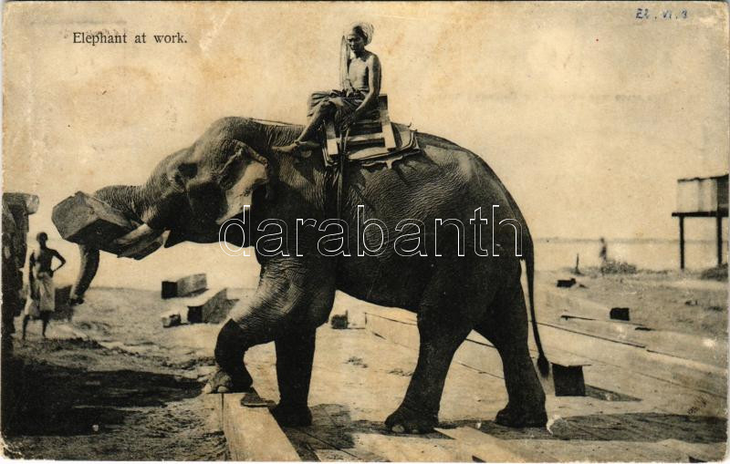 1912 Munkára fogott elefánt Indiában / Elephant at work in India (r) https://www.darabanth.com/de/451-Fernauktion/451.0/Ansichtskarten/Tierwelt~2000074/1912-Munkara-fogott-elefant-Indiaban-Elephant-at-work-in-India-r~II3001801