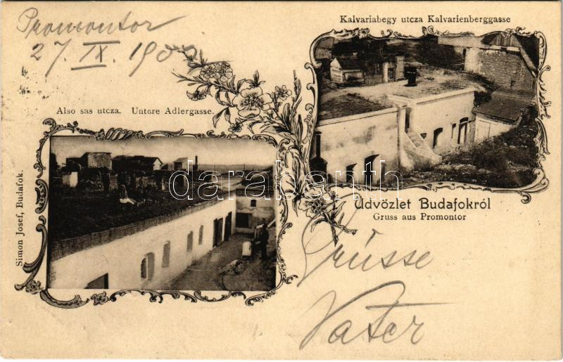 1902 Budapest XXII. Budafok, Alsó Sas utca, Kálváriahegy utca. Simon J... https://www.darabanth.com/de/451-Fernauktion/451.0/Ansichtskarten/Ungarn~2000004/1902-Budapest-XXII-Budafok-Also-Sas-utca-Kalvariahegy-utca-Simon-Josef-kiadasa-Art-Nouveau-~II2995644