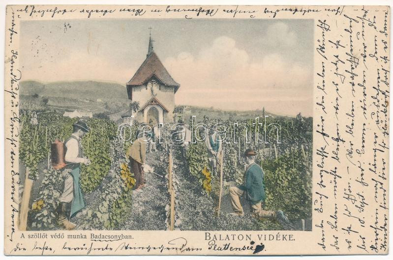 1904 Badacsony, A szőlőt védő munka, permetezés a szőlőhegyen. Balaton... https://www.darabanth.com/de/451-Fernauktion/451.0/Ansichtskarten/Ungarn~2000004/1904-Badacsony-A-szolot-vedo-munka-permetezes-a-szolohegyen-Balaton-Videke-DKFE-891~II3000329