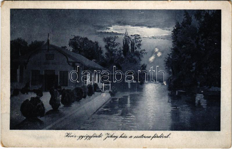 1935 Hévíz, Jókai ház a csatornafürdővel este (EK) https://www.darabanth.com/de/451-Fernauktion/451.0/Ansichtskarten/Ungarn~2000004/1935-Heviz-Jokai-haz-a-csatornafurdovel-este-EK~II2997845