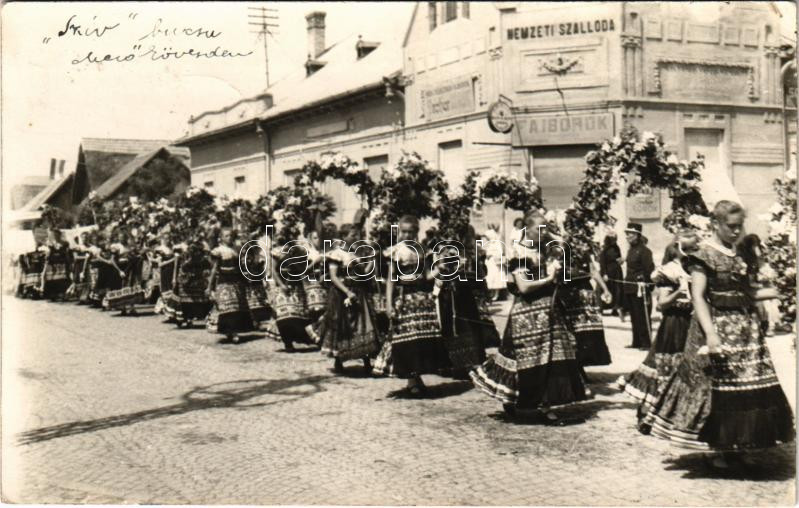 1938 Mezőkövesd, Szív búcsú Mezőkövesden, Nemzeti szálloda, magyar fol... https://www.darabanth.com/de/451-Fernauktion/451.0/Ansichtskarten/Ungarn~2000004/1938-Mezokovesd-Sziv-bucsu-Mezokovesden-Nemzeti-szalloda-magyar-folklor-photo~II3000010