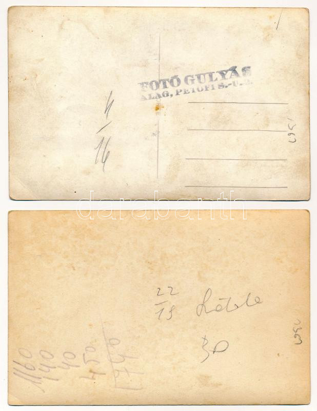 Beschreibung: 1954 Orosháza, Országos Lovasbajnokság résztvevője ugrat a lovával. Foto Gulyás, Alag. - 2 db fotó / 2 photo postcards