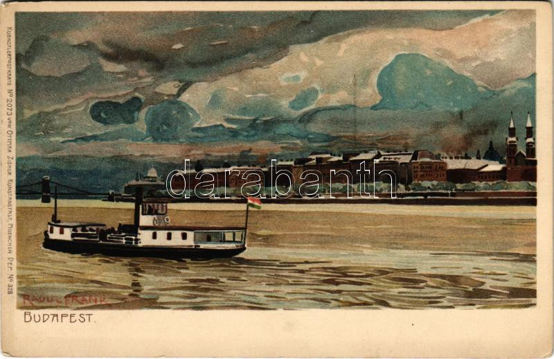 Beschreibung: Budapest, Lánchíd, gőzhajó. Kuenstlerpostkarte No. 2073. von Ottmar Zieher Kunstanstalt litho s: Raoul Frank (EK)