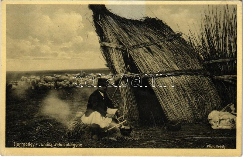 Hortobágy, Juhász a Hortobágyon, magyar folklór. Photo Erdélyi https://www.darabanth.com/de/451-Fernauktion/451.0/Ansichtskarten/Ungarn~2000004/Hortobagy-Juhasz-a-Hortobagyon-magyar-folklor-Photo-Erdelyi~II3002590