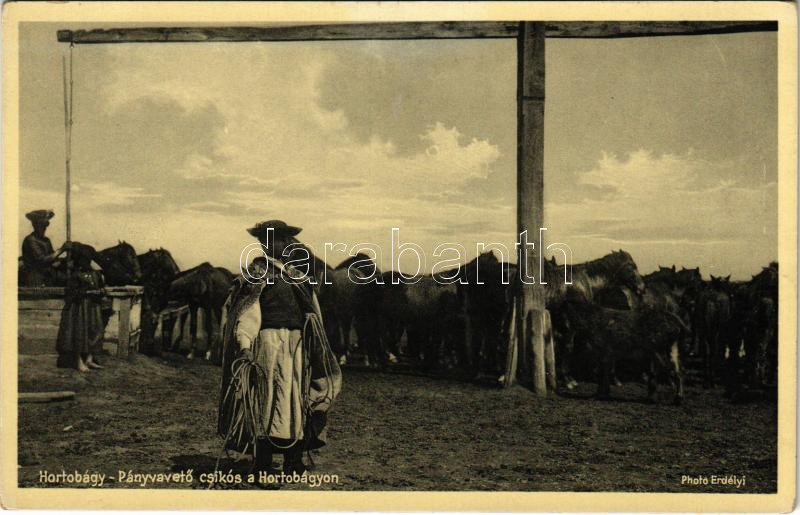 Hortobágy, Pányvavető csikós a Hortobágyon, magyar folklór. Photo Erdé... https://www.darabanth.com/de/451-Fernauktion/451.0/Ansichtskarten/Ungarn~2000004/Hortobagy-Panyvaveto-csikos-a-Hortobagyon-magyar-folklor-Photo-Erdelyi~II3002592
