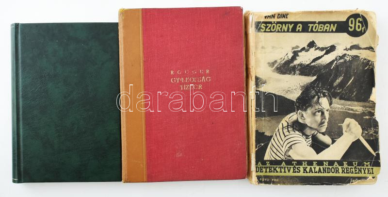 Az Athenaeum detektívregényei sorozat 3 kötete: Latimer, Jonathan: Gyilkosság a tébolydában. Ford.: Kőszegi Imre. Bp., [1936], Athenaeum. Modern műbőr-kötésben, jó állapotban. + Rogger, Louis Lucien: Gyilkosság tízkor. Ford.: Aczél László. Bp., [1936], Athenaeum. Félbőr-kötésben, a borítón némi kopással, a gerincen kis sérülésekkel. + [Wright, Willard Huntington] Van Dine: Szörny a tóban. Ford.: Garami Andor. Bp., [1934], Athenaeum. Kiadói papírkötés, sérült, rossz állapotban, pótolt gerinccel.