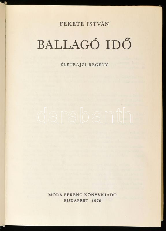 Fekete István: Ballagó idő. Életrajzi regény. Bp., 1970, Móra. Első ki... https://www.darabanth.com/de/451-Fernauktion/451.0/Bucher/Bucher-Andere-kuriositaten~1000029/Fekete-Istvan-Ballago-ido-Eletrajzi-regeny-Bp-1970-Mora-Elso-kiadas-Kiadoi-egeszvC3~II3000330