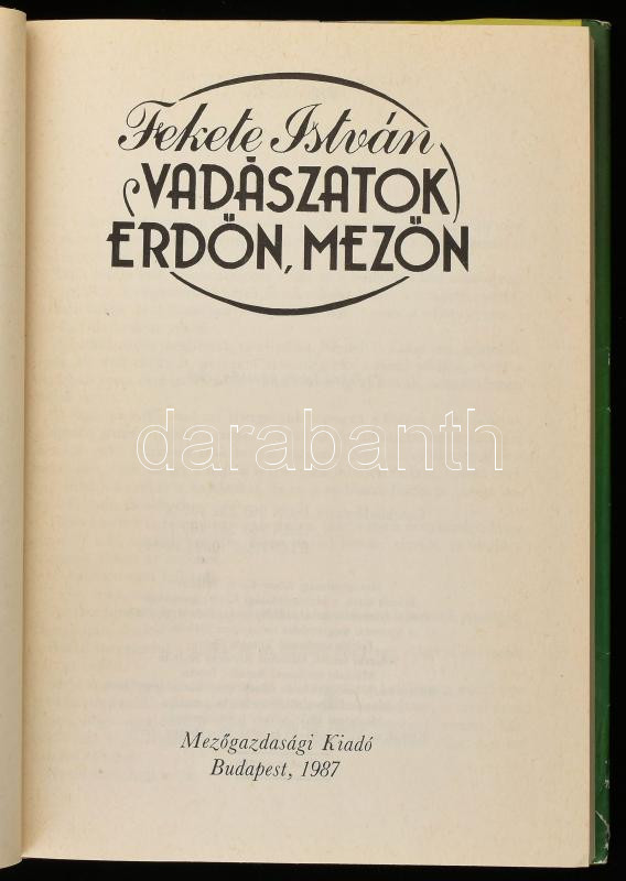 Fekete István: Vadászatok erdőn, mezőn. Bp., 1987, Mezőgazdasági Kiadó... https://www.darabanth.com/de/451-Fernauktion/451.0/Bucher/Bucher-Andere-kuriositaten~1000029/Fekete-Istvan-Vadaszatok-erdon-mezon-Bp-1987-Mezogazdasagi-Kiado-Elso-kiadas-Kiado~II3000361