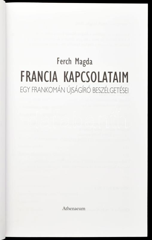 Ferch Magda: Francia kapcsolataim. Egy frankomán újságíró beszélgetései. Ferch Magda (1947-) műfordító, szerkesztő, újságíró által Haraszty István "Édeskének" (1934-2022), Kossuth-díjas szobrász, festőművész részére DEDIKÁLT! Bp., 2005, Athenaeum. Kiadói papírkötésben.