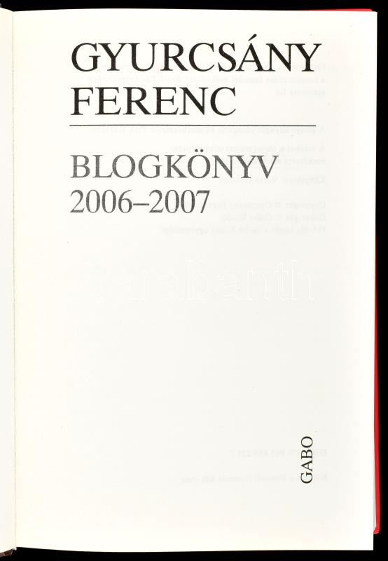 Gyurcsány Ferenc: Blogkönyv 2006-2007. Bp., 2008., Gabo. Kiadói karton... https://www.darabanth.com/de/451-Fernauktion/451.0/Bucher/Bucher-Andere-kuriositaten~1000029/Gyurcsany-Ferenc-Blogkonyv-2006-2007-Bp-2008-Gabo-Kiadoi-kartonalt-papirkotes~II2944381