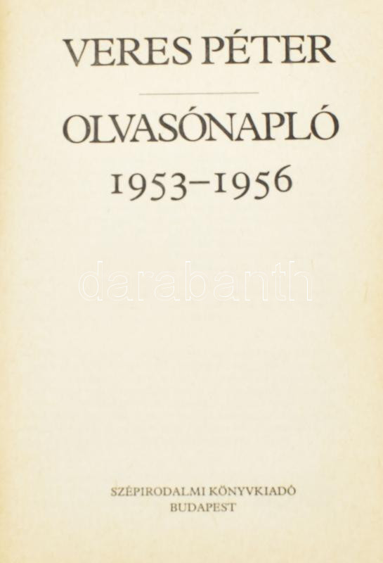 Veres Péter: Olvasónapló 1953-1956. Összeáll. és sajtó alá rendezte: Kristó Nagy István. Bp.,1986,Szépirodalmi. Kiadói kissé kopott egészvászon-kötés, Veres Péter idézetes bejegyzéssel.