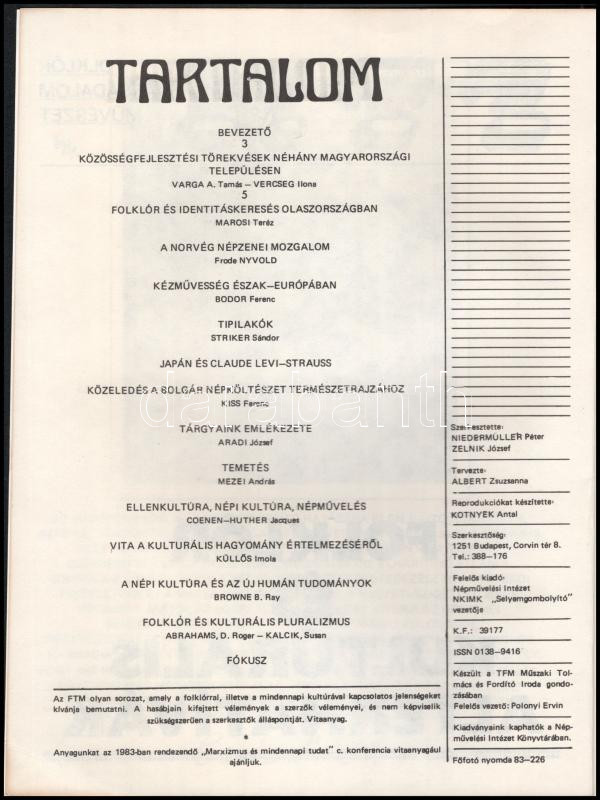 1983 FTM. Folklór Társadalom Művészet 14., 1983/3. száma. Folklór és k... https://www.darabanth.com/de/451-Fernauktion/451.0/Bucher/Bucher-Architektur-Kunst~1000013/1983-FTM-Folklor-Tarsadalom-Muveszet-14-19833-szama-Folklor-es-kulturalis-alternativC3~II2901711