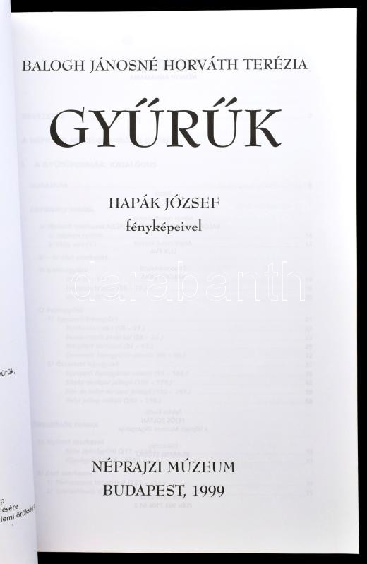 Balogh Jánosné Horváth Terézia: Gyűrűk .Bp., 1999 Néprajzi múzeum. Kia... https://www.darabanth.com/de/451-Fernauktion/451.0/Bucher/Bucher-Architektur-Kunst~1000013/Balogh-Janosne-Horvath-Terezia-Gyuruk-Bp-1999-Neprajzi-muzeum-Kiadoi-papirkotes-JC3~II2995087